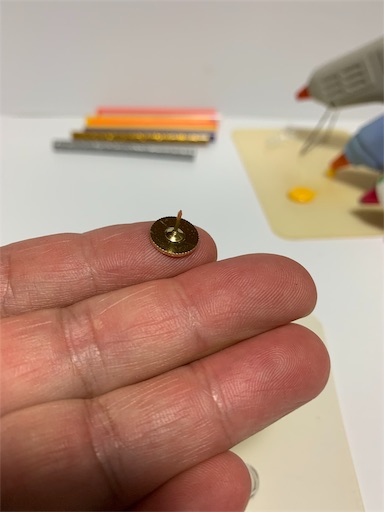 押しピンの裏側にグルーをポチッと小さく付けます。
